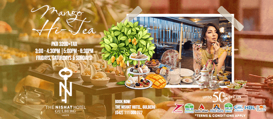 Experience the vibrant flavors of summer with Nishat Hotel Gulberg Lahore’s special Mango Hi-Tea. Set in our elegant gardens or sophisticated indoor lounge, indulge in a delightful spread.